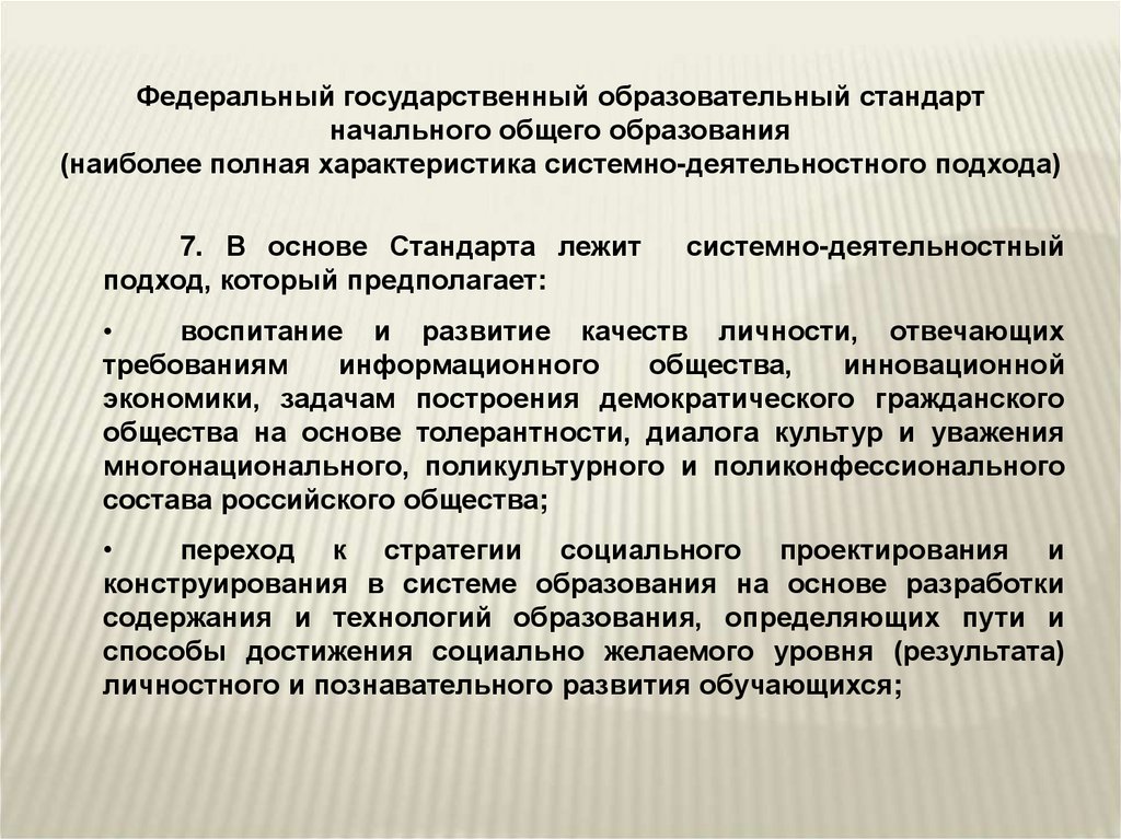 Системно-деятельностный подход концептуальная основа ФГОС общего образования