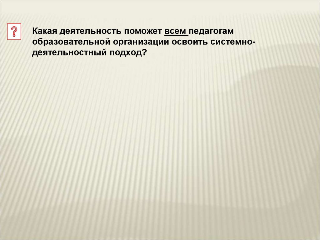 Какая деятельность поможет всем педагогамобразовательной организации освоить системнодеятельностный подход?