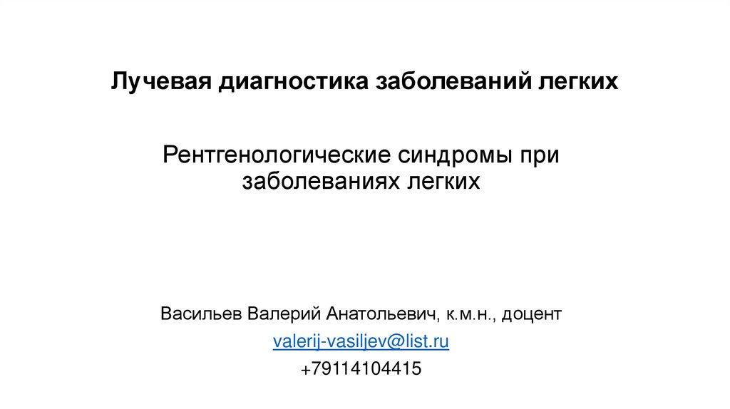 Лучевая диагностика заболеваний легких. Рентгенологические синдромы при заболеваниях легких