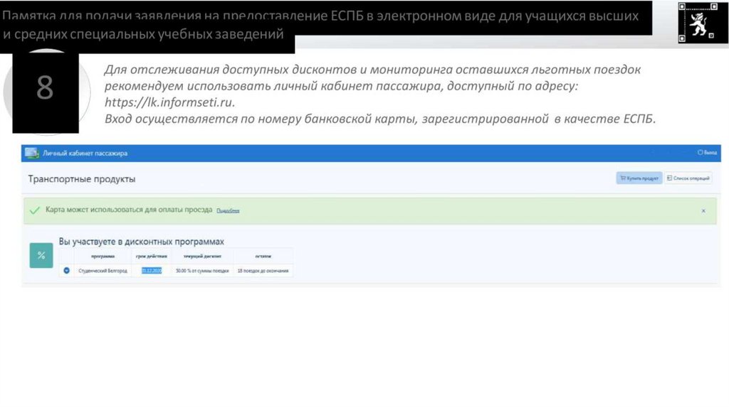Льготная поездка предполагает предоставление