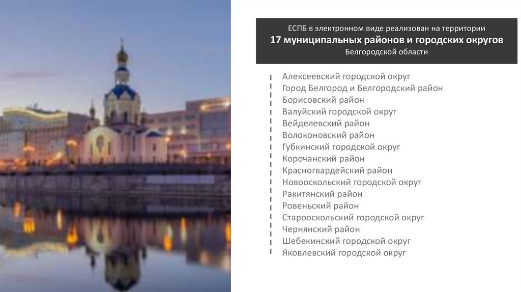 ЕСПБ в электронном виде реализован на территории17 муниципальных районов и городских округов