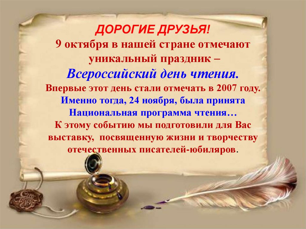 отечественных писателей-юбиляров.