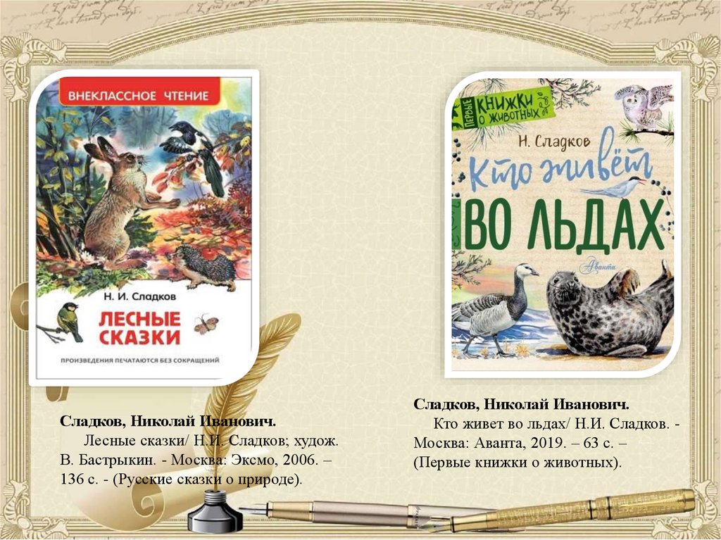 и фауны родного края. Свои произведения Сладков