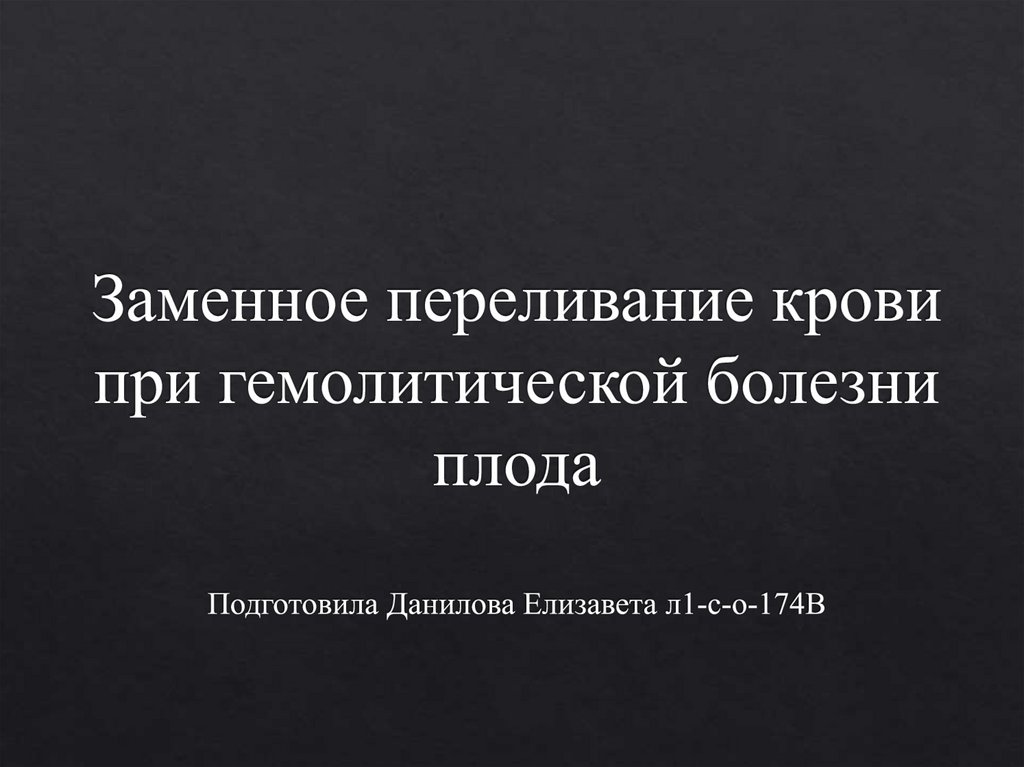 1. Заменное переливание крови при гемолитической болезни плода Подготовила Данилова Елизавета л1-с-о-174В