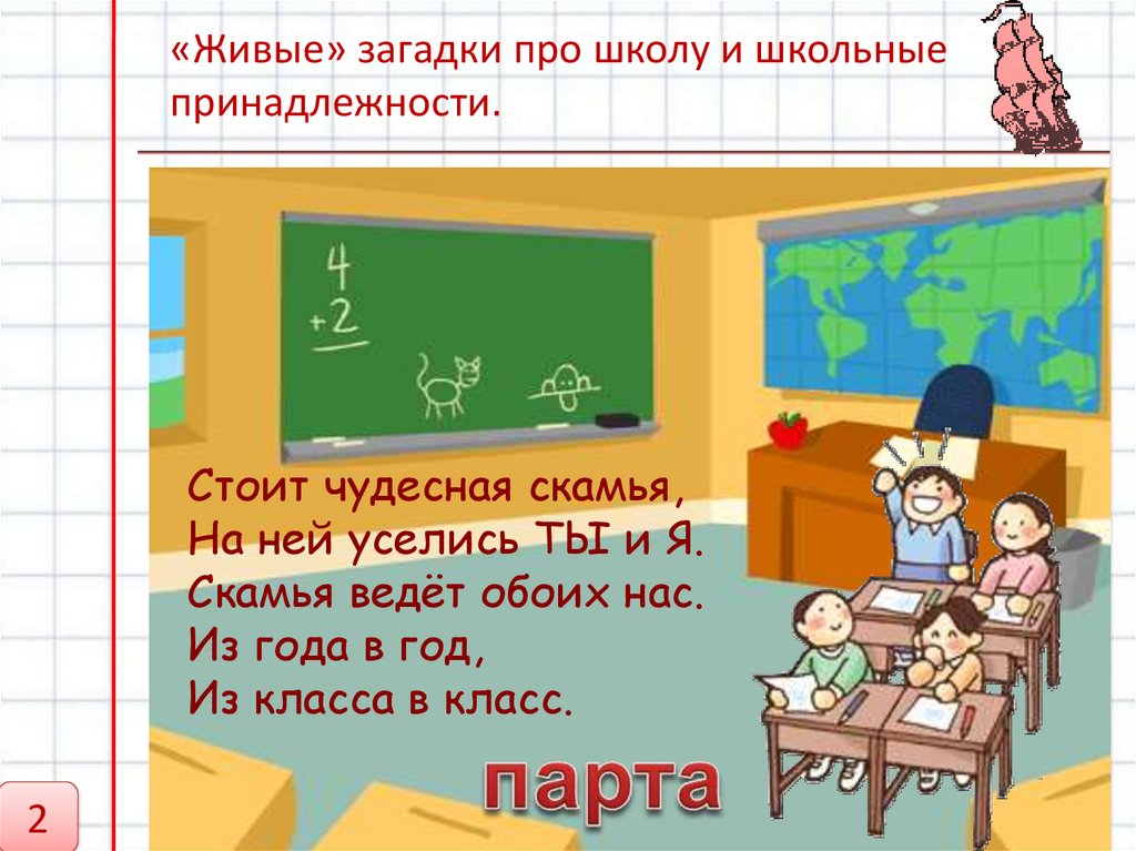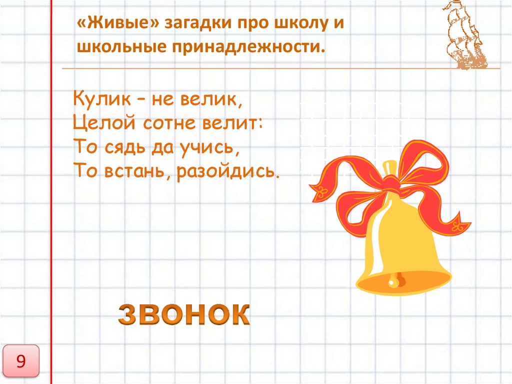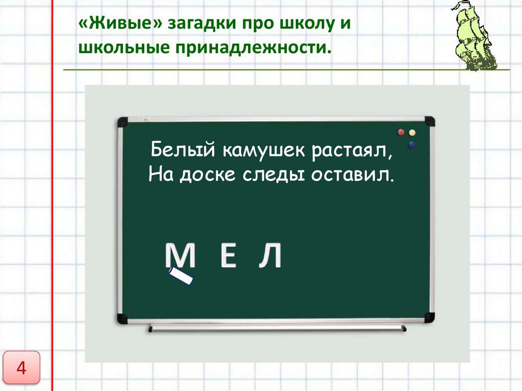 «Живые» загадки про школуи школьные принадлежности.