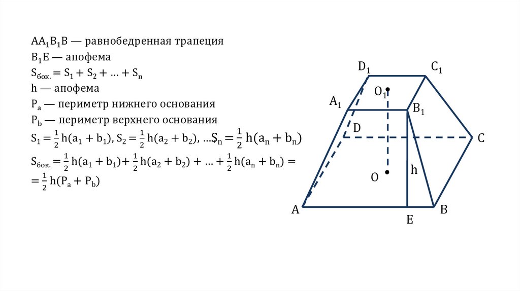АА1В1В — равнобедренная трапецияВ1Е — апофема