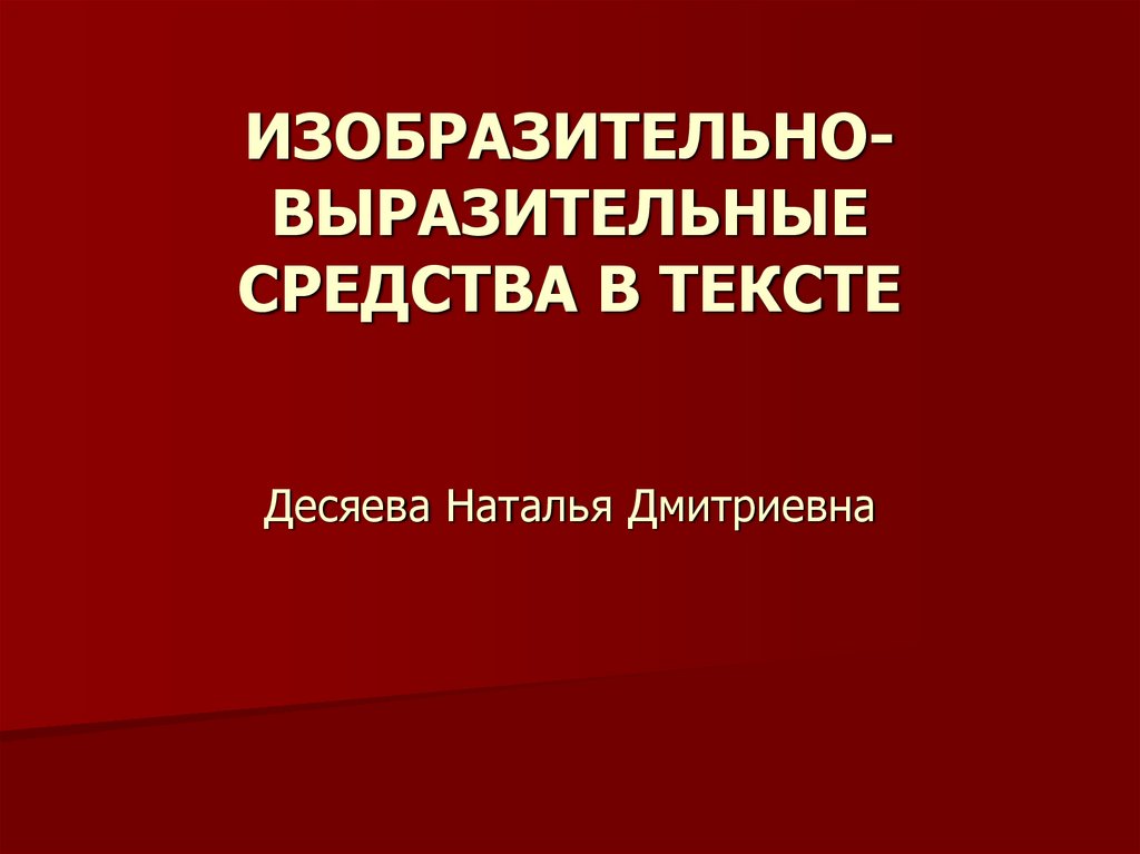 1. ИЗОБРАЗИТЕЛЬНО-ВЫРАЗИТЕЛЬНЫЕ СРЕДСТВА В ТЕКСТЕ Десяева Наталья Дмитриевна