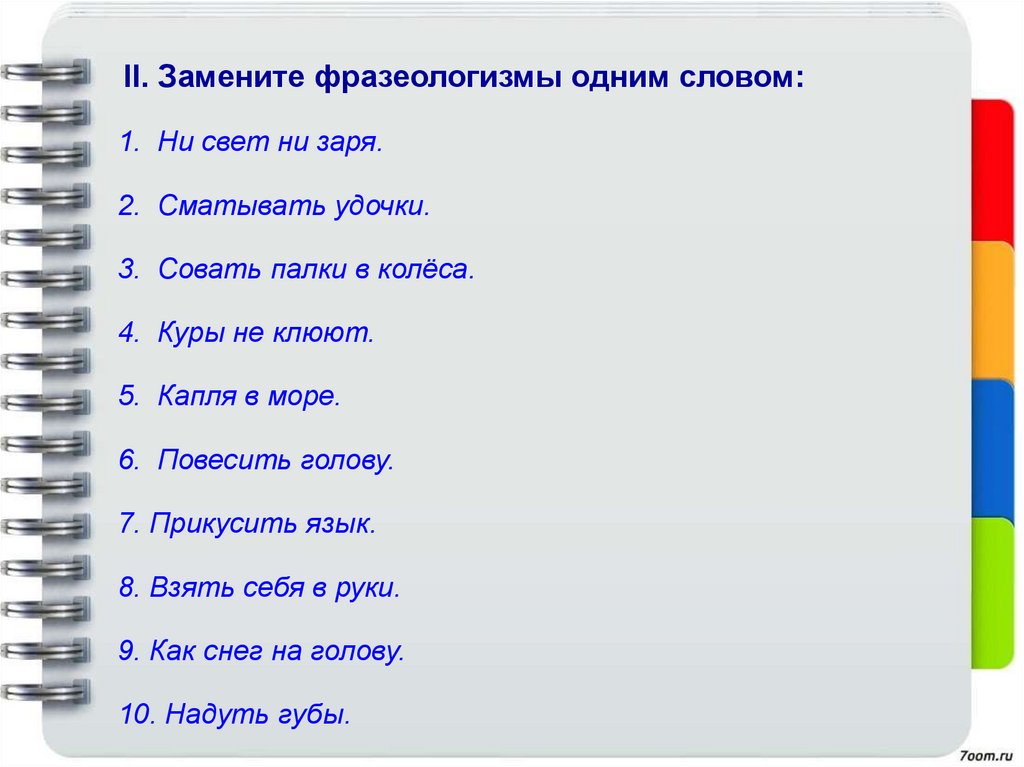 II. Замените фразеологизмы одним словом:1. Ни свет ни заря.