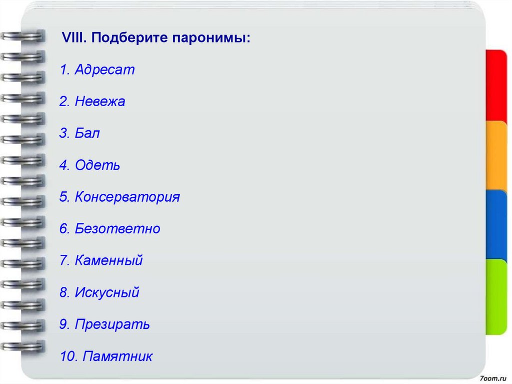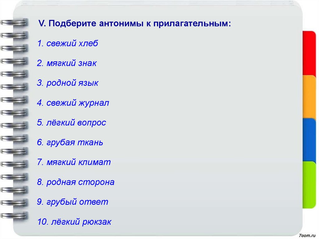 V. Подберите антонимы к прилагательным:1. свежий хлеб