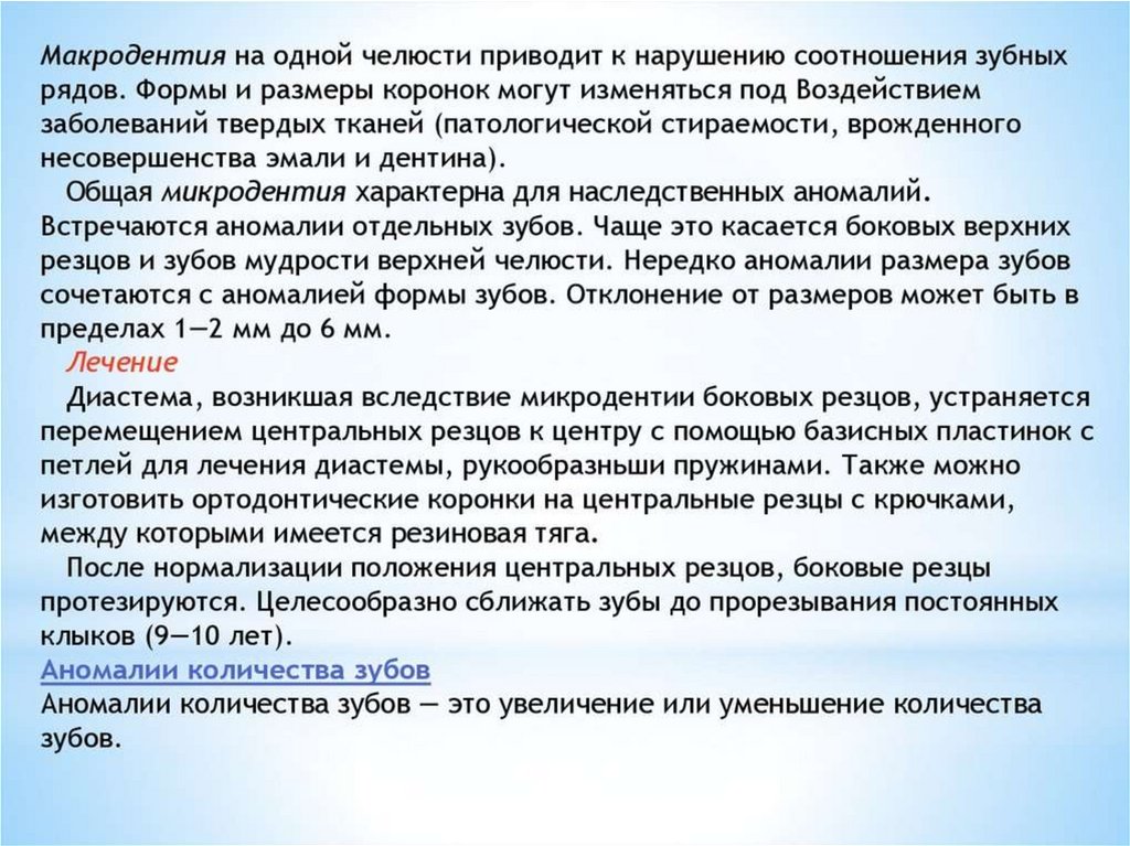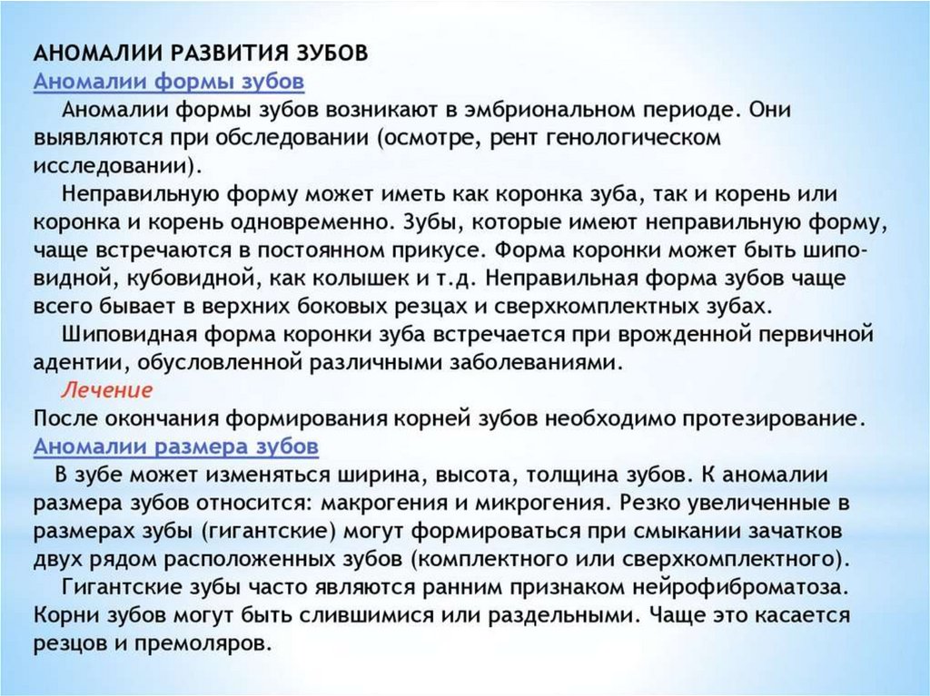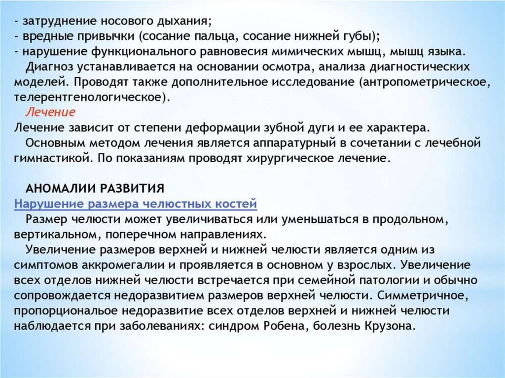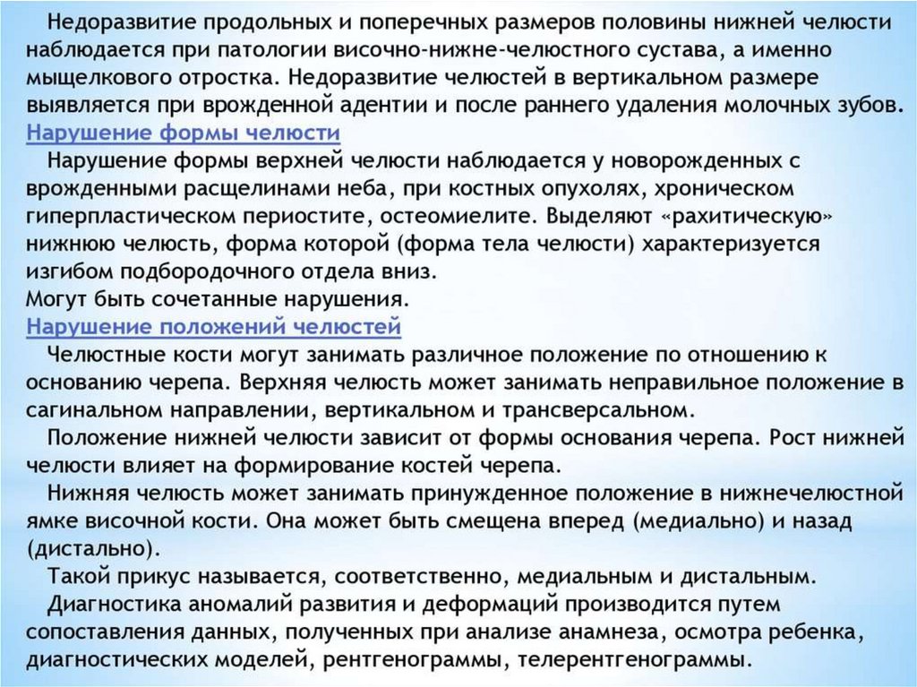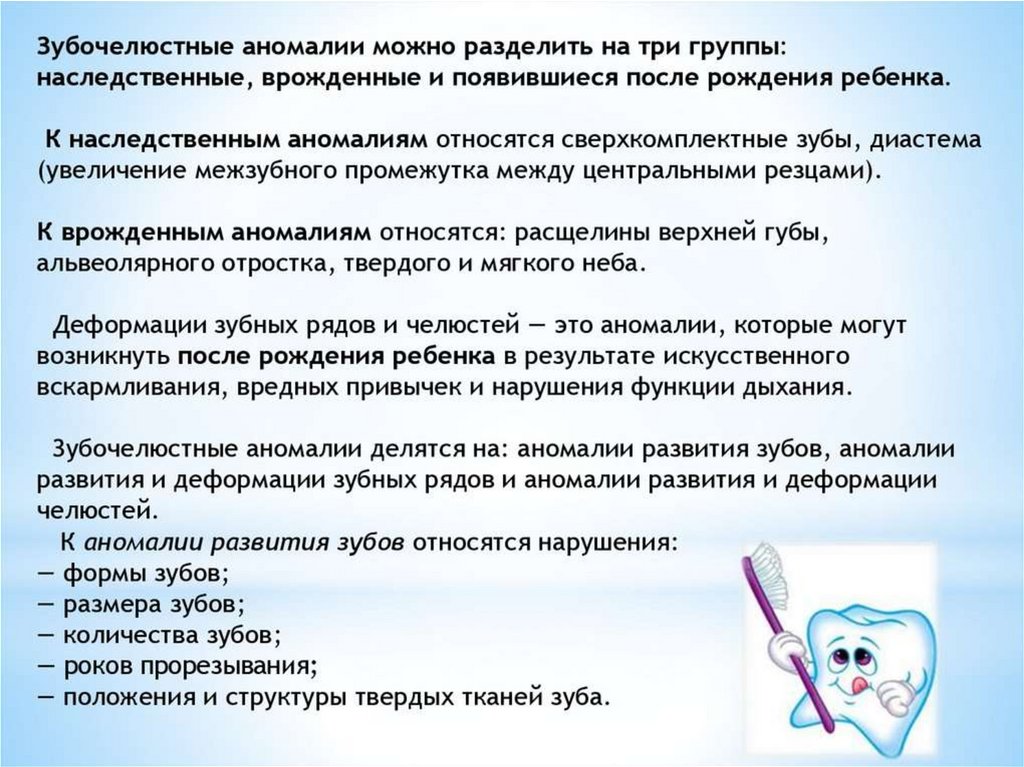 Молочные зубы. Зубочелюстная система в целом. Прикусы. Аномалии развития зубов