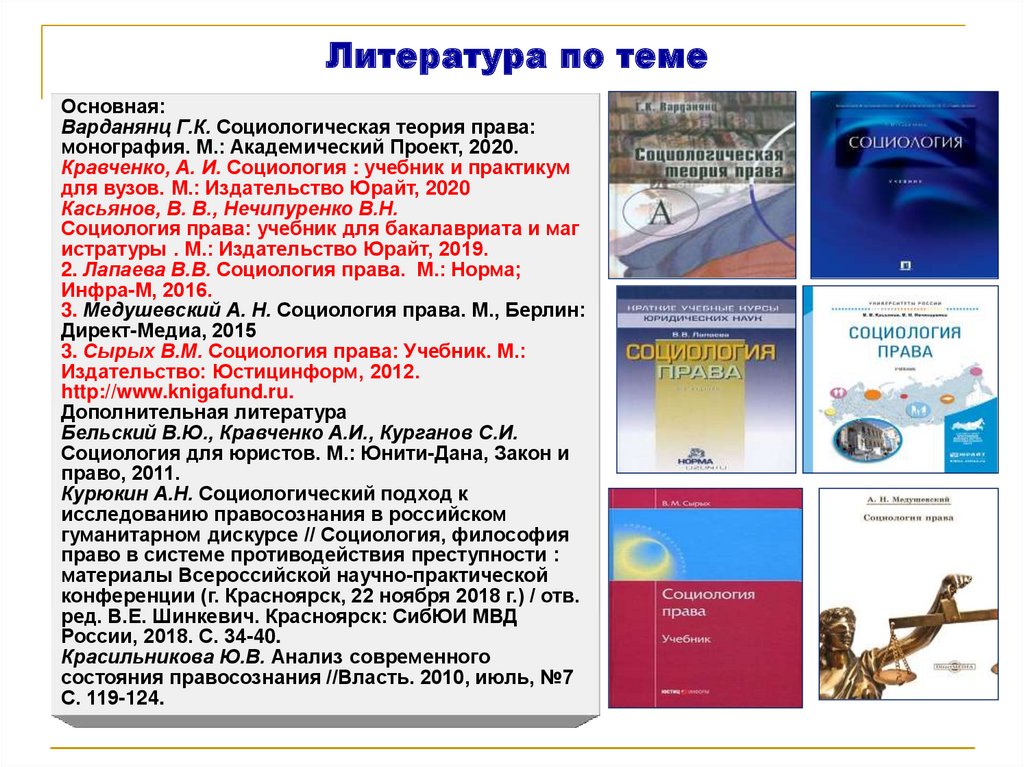 3. Медушевский А. Н. Социология права. М., Берлин: