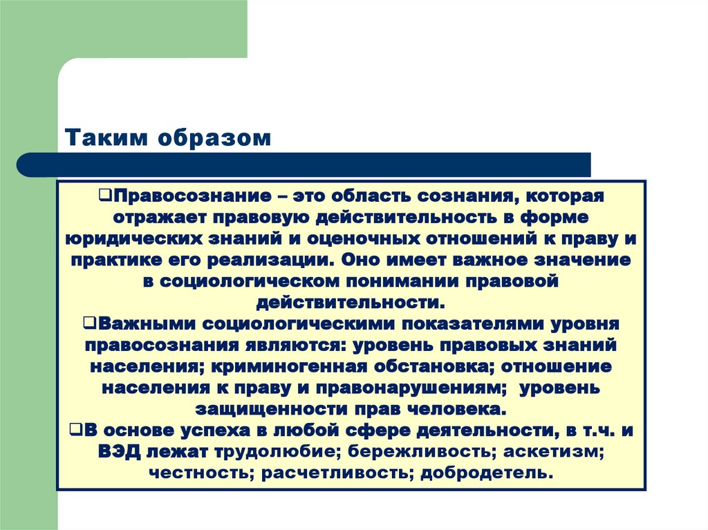 правосознания являются: уровень правовых знаний