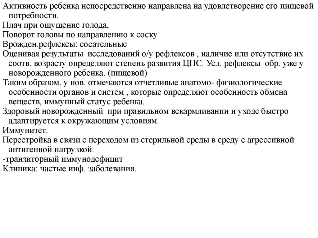 Активность ребенка непосредственно направлена на удовлетворение его пищевойпотребности.