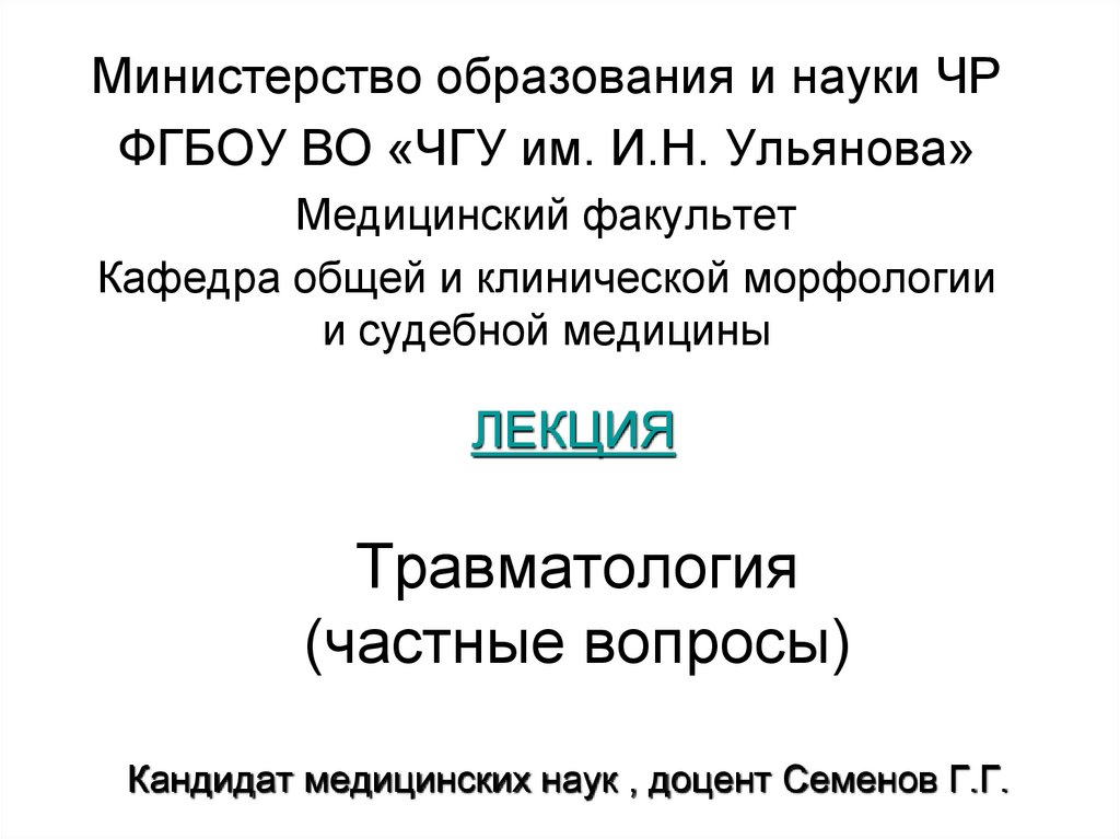 Кандидат медицинских наук , доцент Семенов Г.Г.
