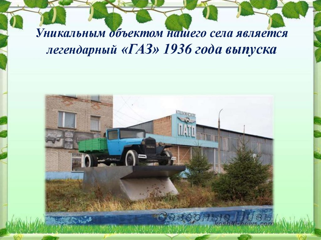 Уникальным объектом нашего села являетсялегендарный «ГАЗ» 1936 года выпуска