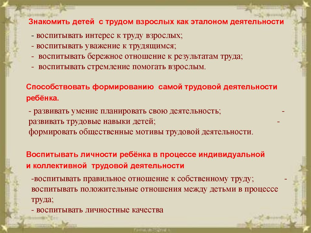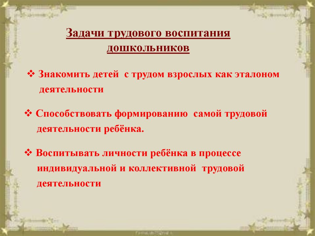 Задачи трудового воспитаниядошкольников