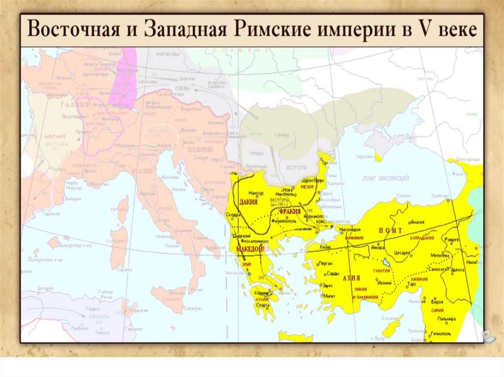 Византия образовалась в 395 году. (Визáнтий –греч.колония) – стояла на берегу пролива Босфор.