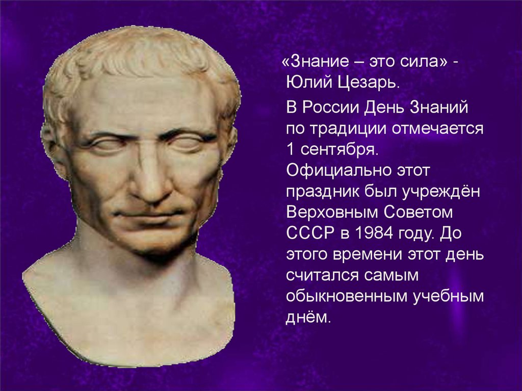 «Знание – это сила» Юлий Цезарь.В России День Знаний