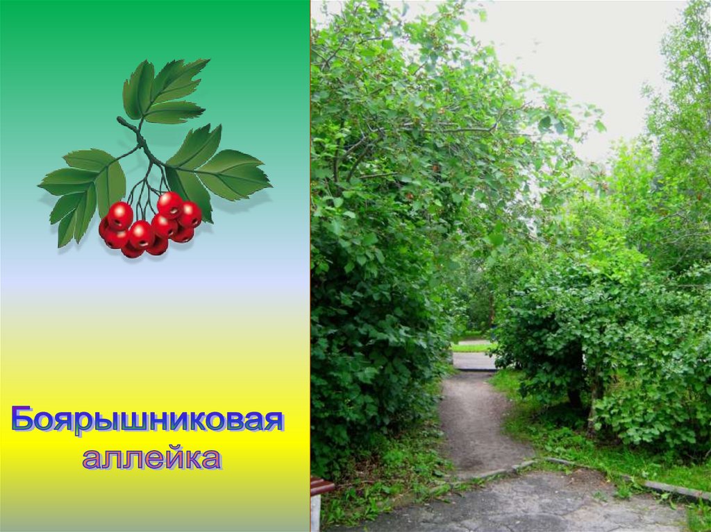 6. На бульваре растут яблони, боярышник, жимолость, клены, рябины, берёзы. Встречаются и довольно редкие кустарники. Например –