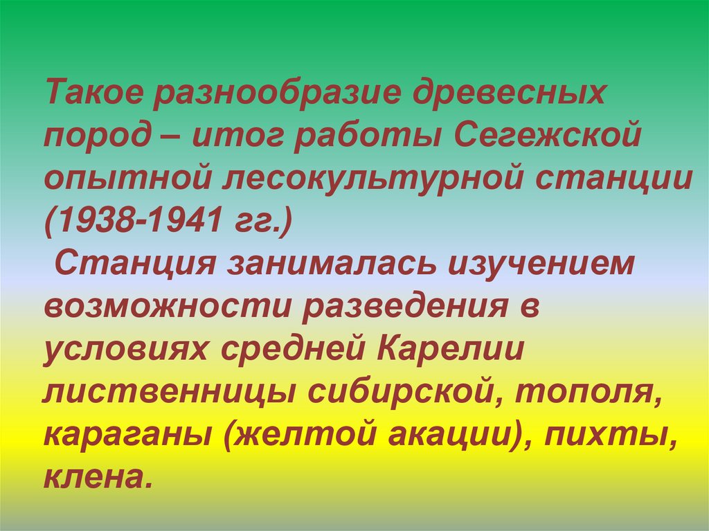 Такое разнообразие древесныхпород – итог работы Сегежской