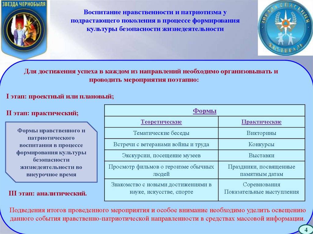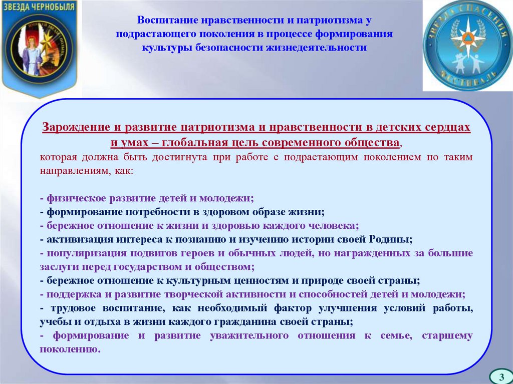 Воспитание нравственности и патриотизма у подрастающего поколения в процессе формирования культуры БЖД