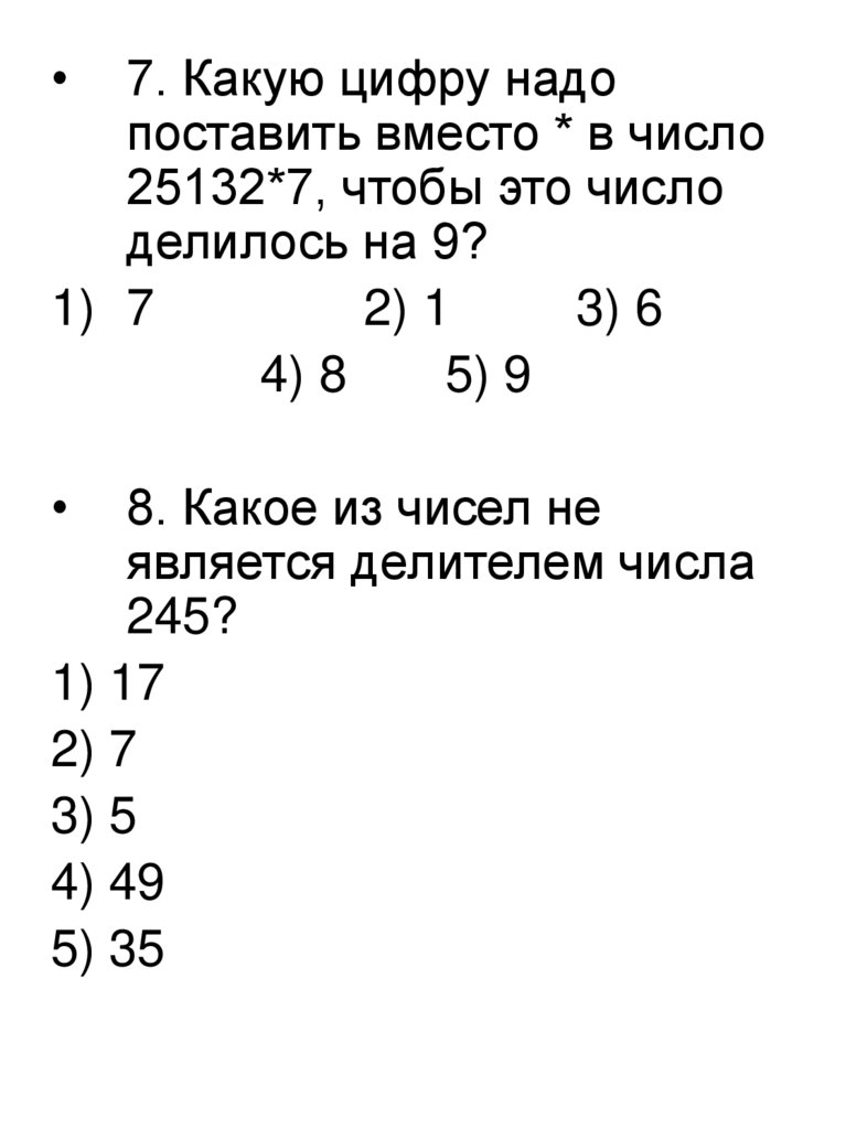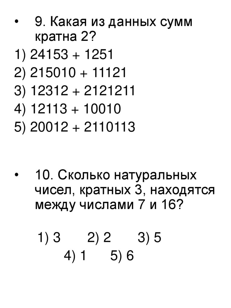 2. ТЕСТ по теме «Делимость натуральных чисел»