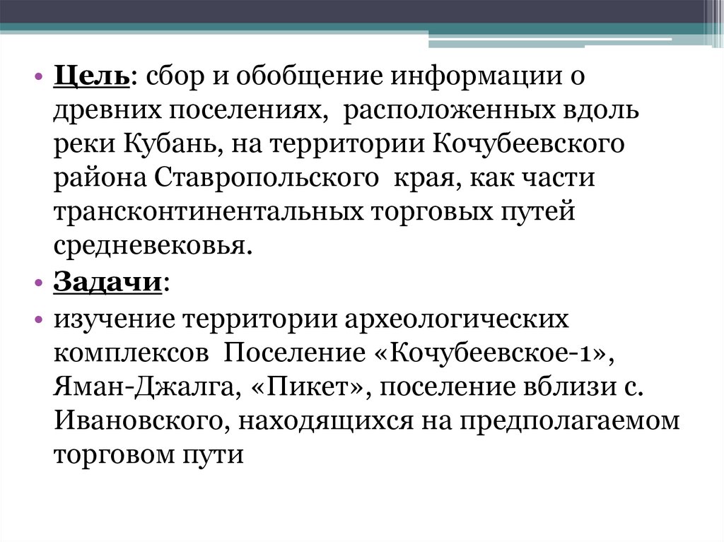 • Цель: сбор и обобщение информации одревних поселениях, расположенных вдоль