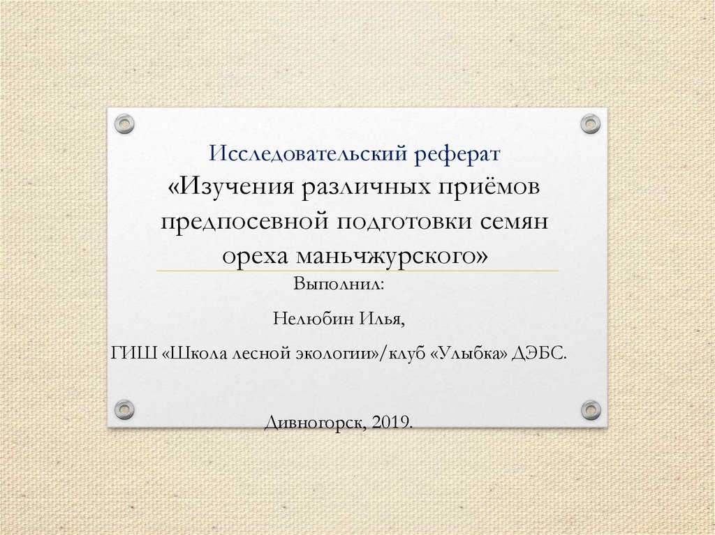 1. Исследовательский реферат «Изучения различных приёмов предпосевной подготовки семян ореха маньчжурского»