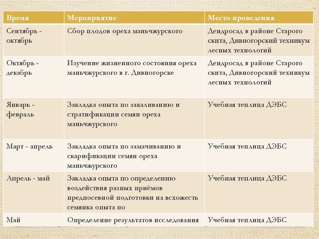 12. План опыта по предпосевной подготовке семян ореха маньчжурского