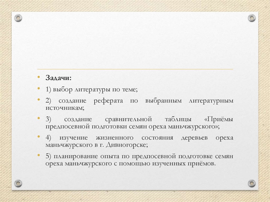 • Задачи:• 1) выбор литературы по теме;