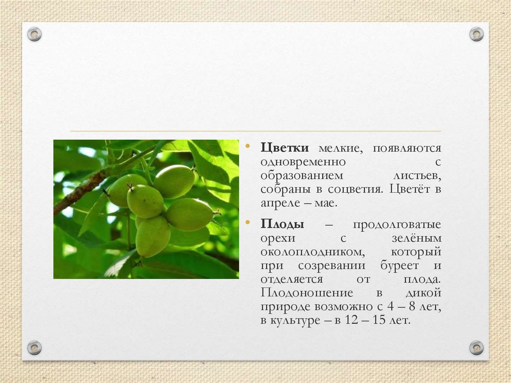 • Орех маньчжурский –дерево высотой 27 – 27 м,