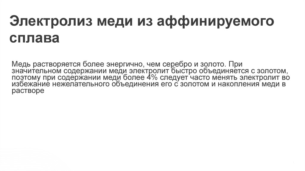 Электролиз меди из аффинируемогосплава