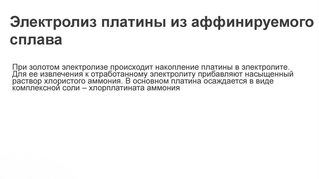 Электролиз платины из аффинируемогосплава