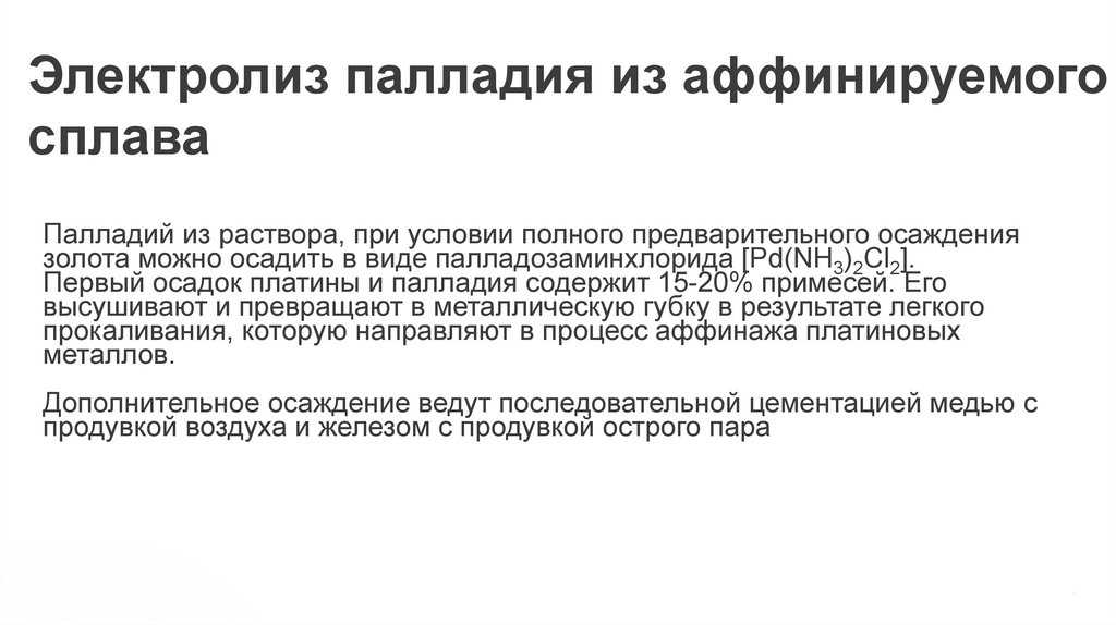 Электролиз палладия из аффинируемогосплава