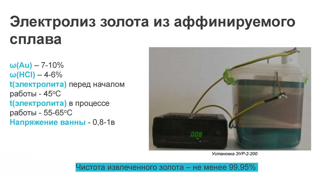 Электролиз золота из аффинируемогосплава