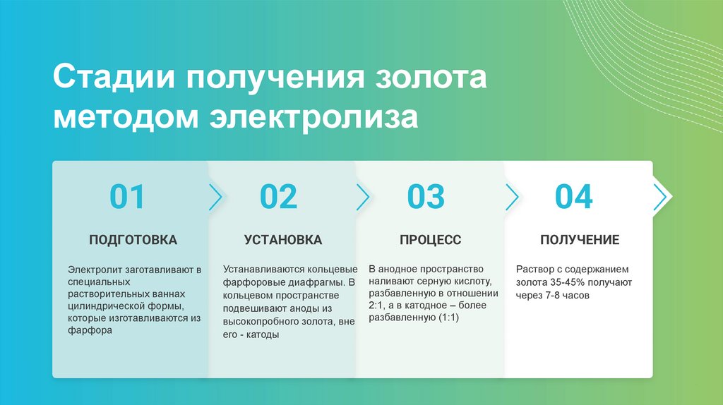 Стадии получения золотаметодом электролиза