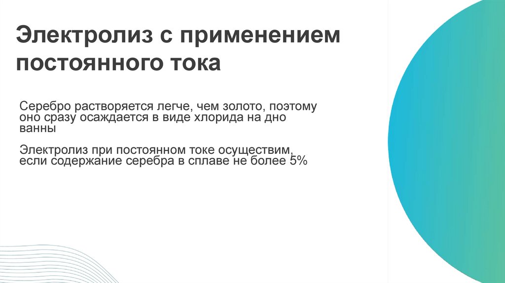 Электролиз серебра в разныхусловиях тока
