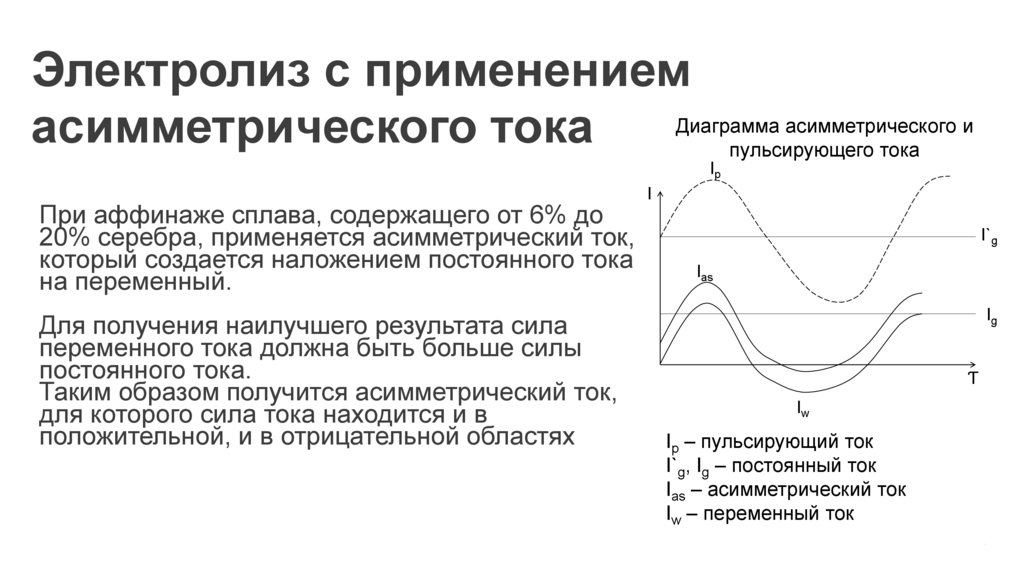 Электролиз с применениемДиаграмма асимметрического и