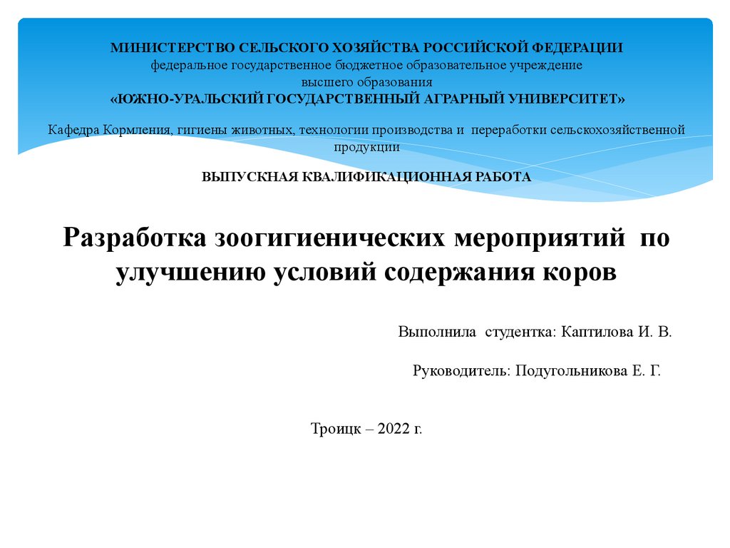 «ЮЖНО-УРАЛЬСКИЙ ГОСУДАРСТВЕННЫЙ АГРАРНЫЙ УНИВЕРСИТЕТ»