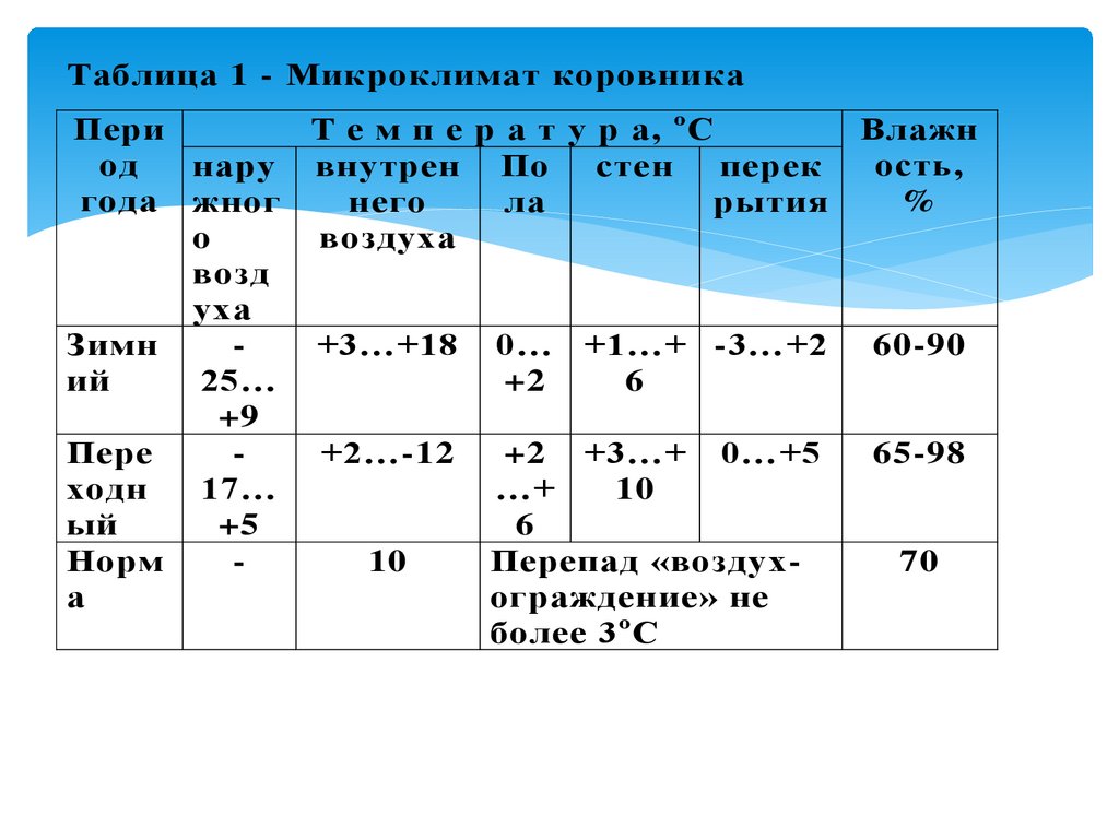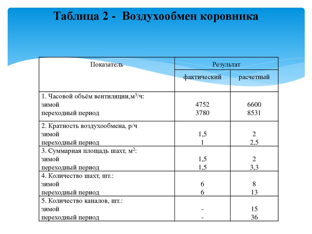 Таблица 2 - Воздухообмен коровникаПоказатель