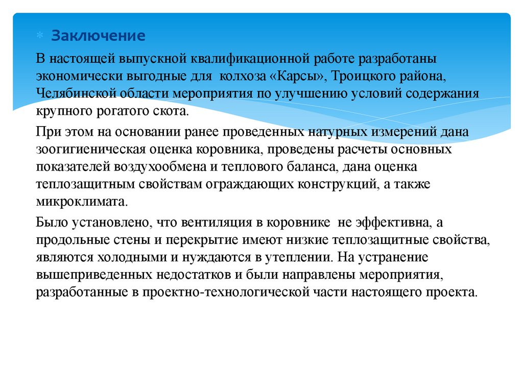 улучшению условий содержания коров в Колхозе «Карсы», Троицкого