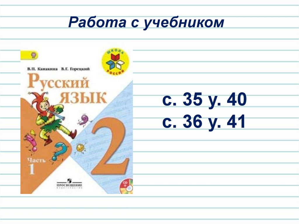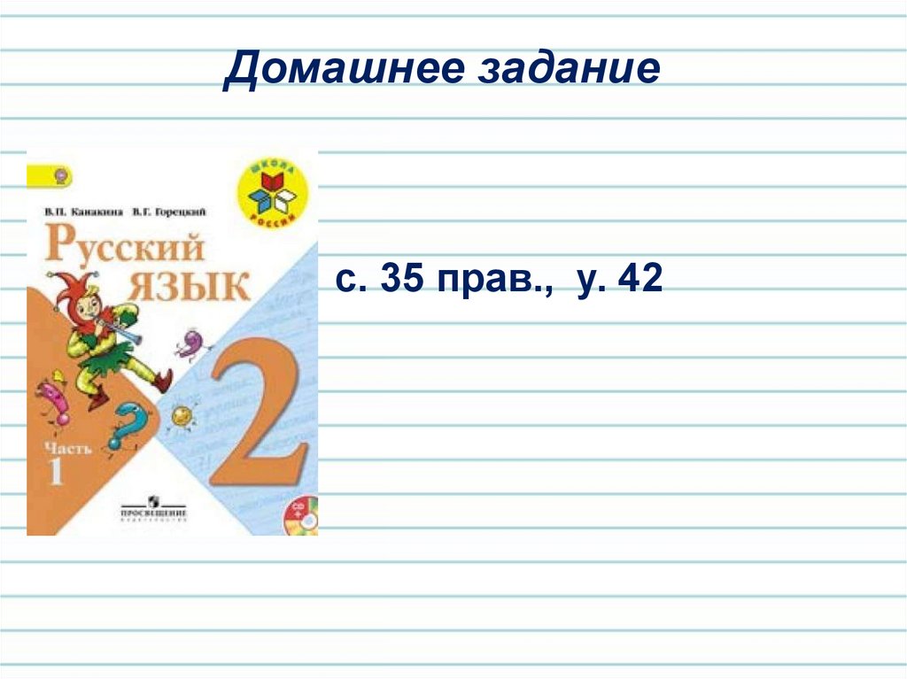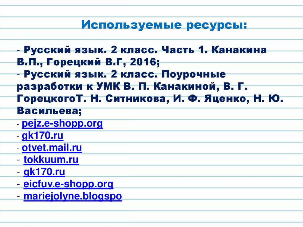 Используемые ресурсы:- Русский язык. 2 класс. Часть 1. Канакина