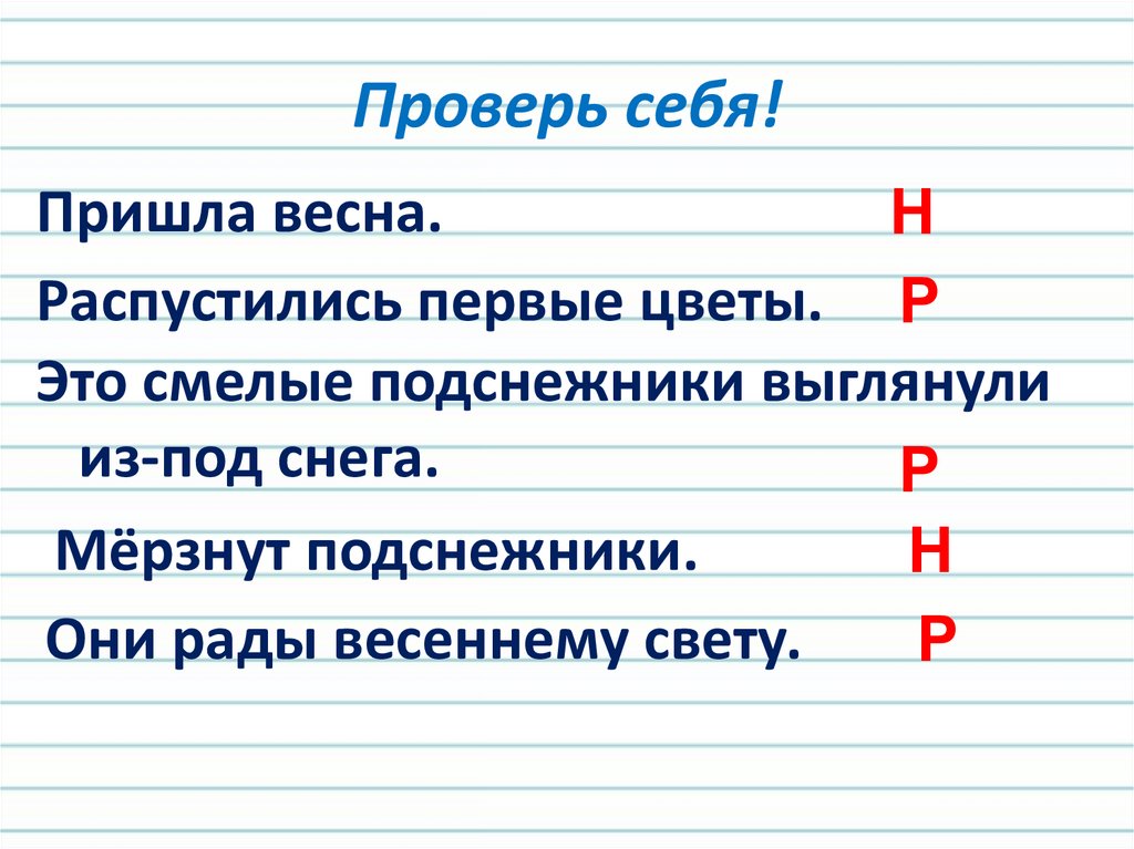 Проверь себя!Пришла весна.