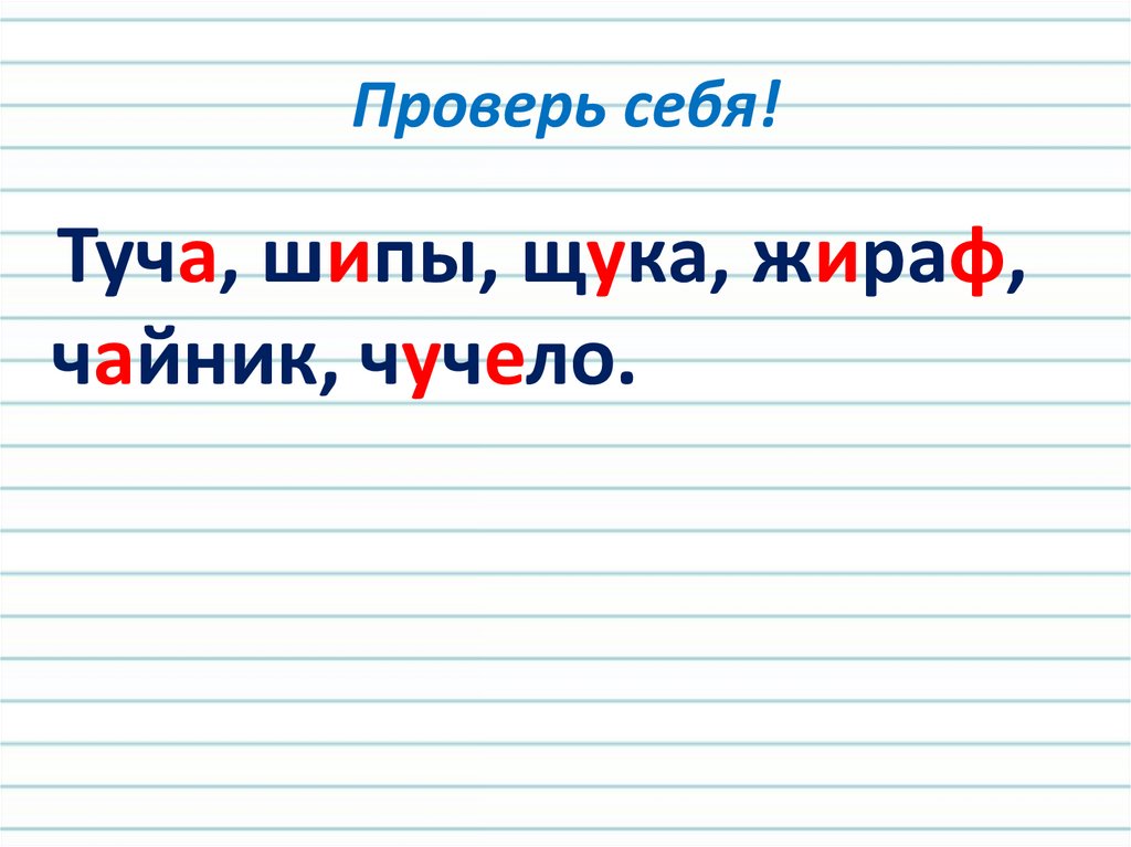 Проверь себя!Туча, шипы, щука, жираф,
