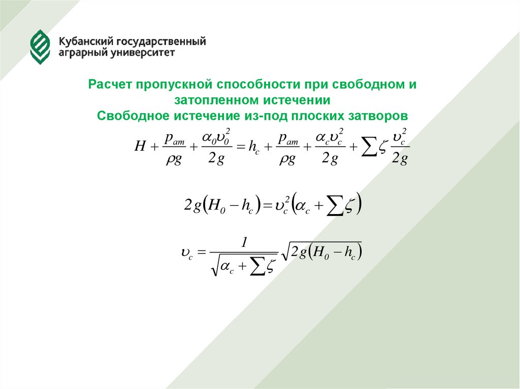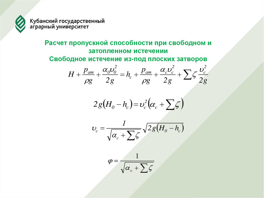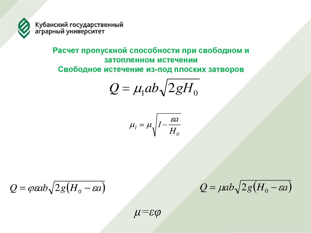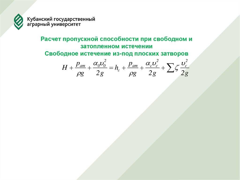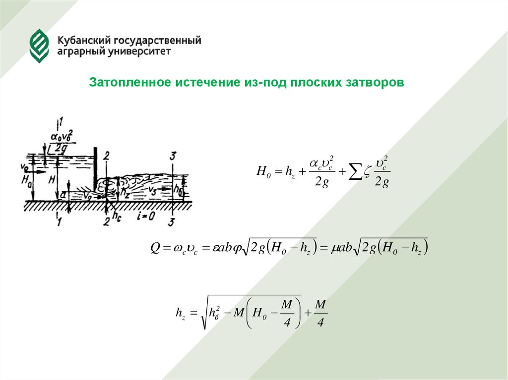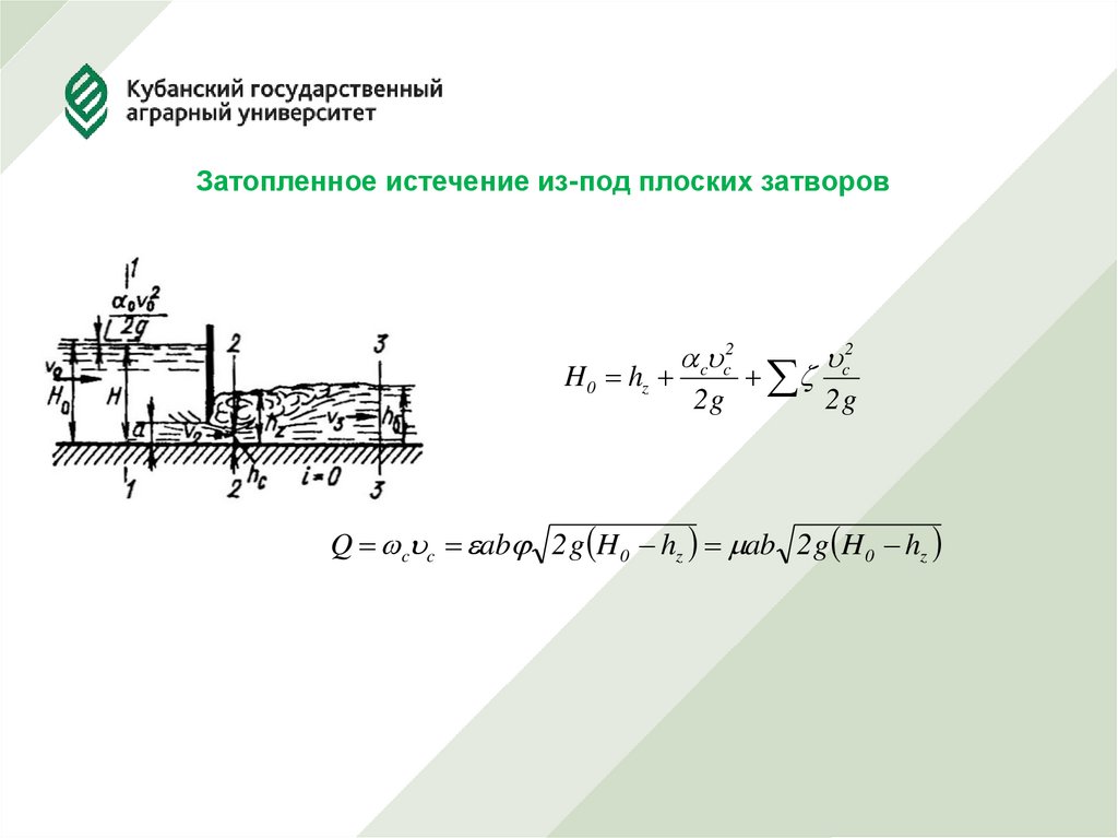 Затопленное истечение из-под плоских затворов18.