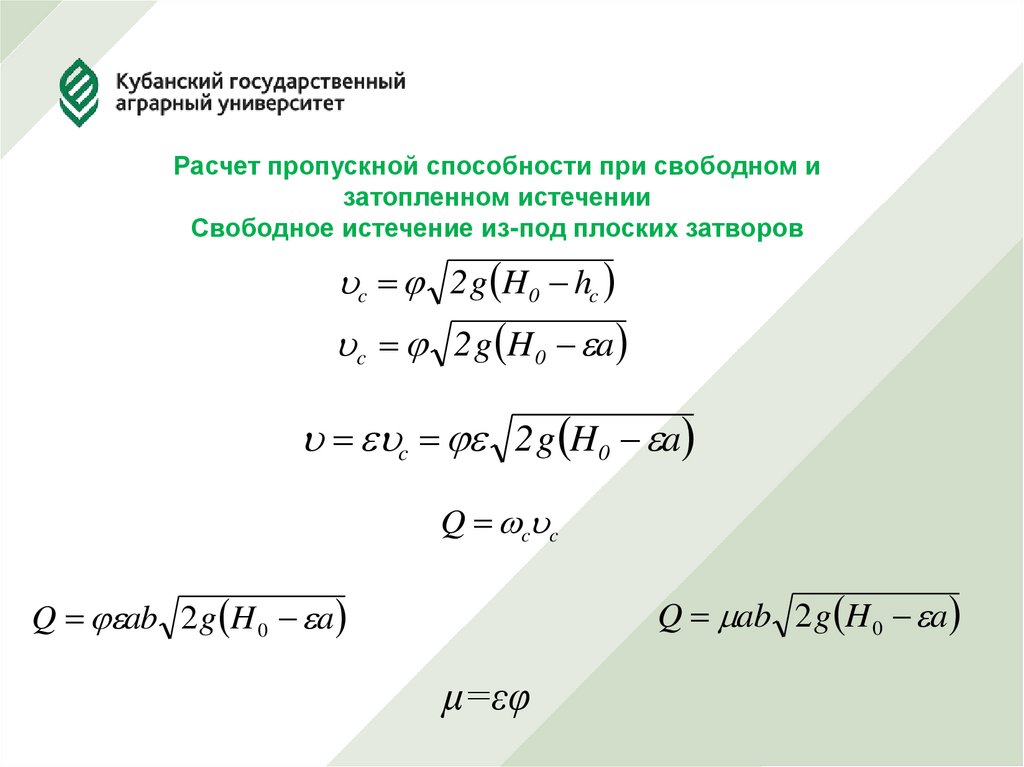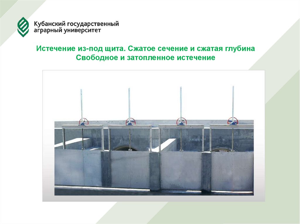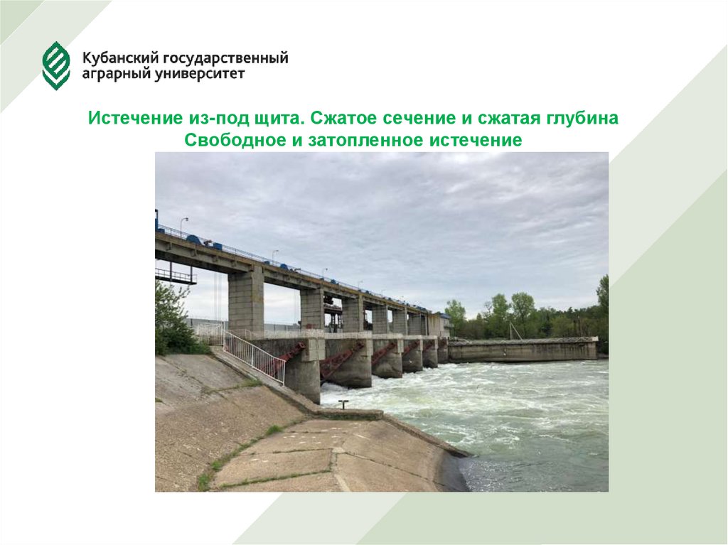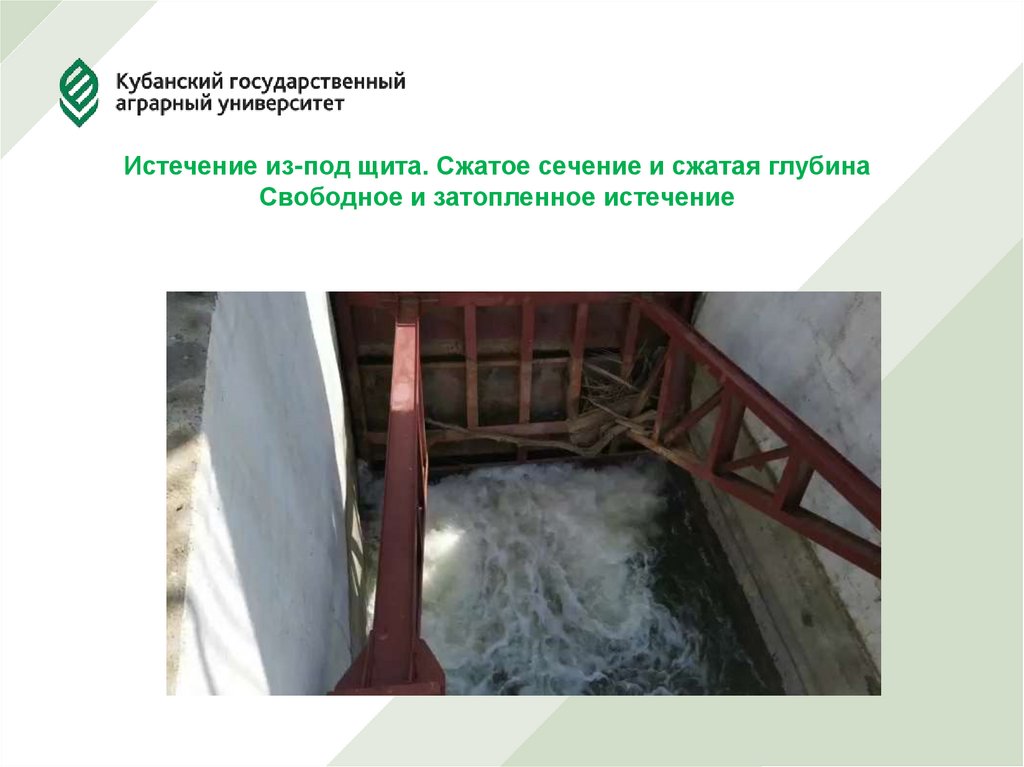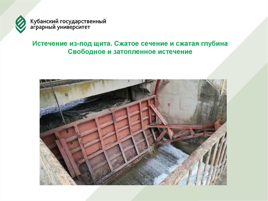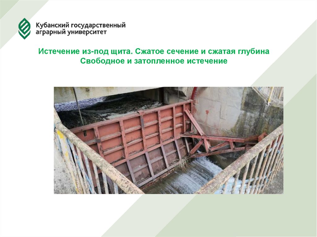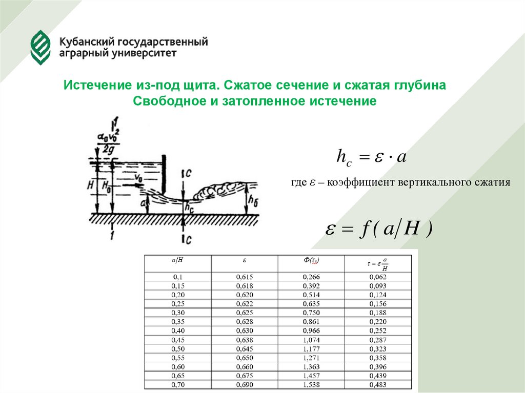 Истечение из-под щита. Сжатое сечение и сжатая глубинаСвободное и затопленное истечение