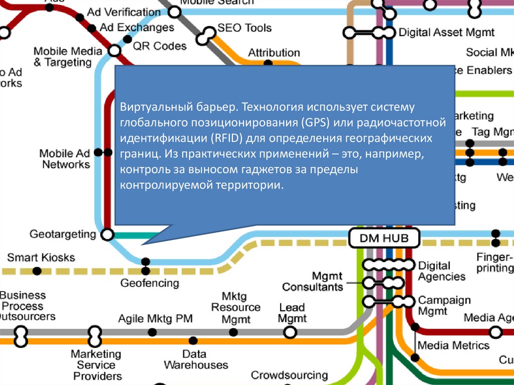 Виртуальный барьер. Технология использует системуглобального позиционирования (GPS) или радиочастотной