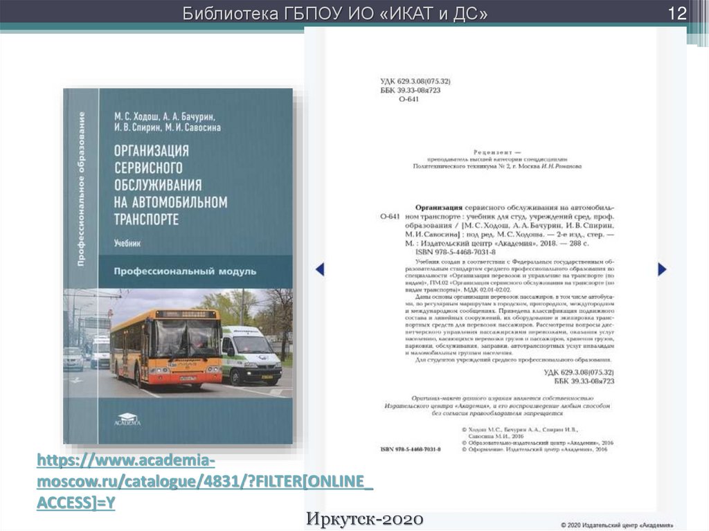 Библиотека ГБПОУ ИО «ИКАТ и ДС»12