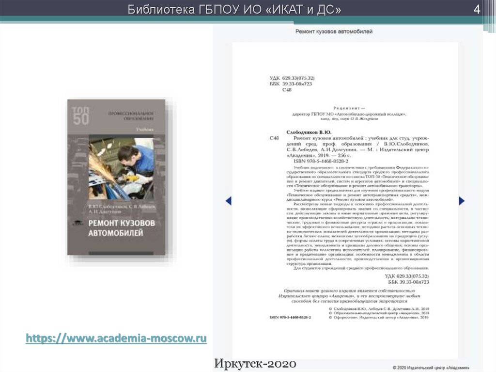 Библиотека ГБПОУ ИО «ИКАТ и ДС»4