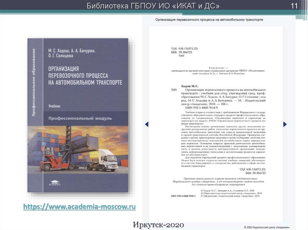 Библиотека ГБПОУ ИО «ИКАТ и ДС»На сайте Академии имеются полные сведения об